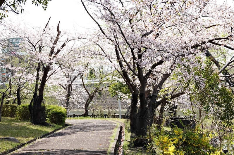 2024/12/5 楓の黄葉(堺市霊園) 法道寺前の慰霊塔公園には、黄色に染まった楓の樹木がある。