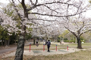 2024/12/5 紅黄葉風景(堺市霊園) 法道寺前の慰霊塔公園には、紅葉と黄色に染まった楓の樹木が入り混じっている。