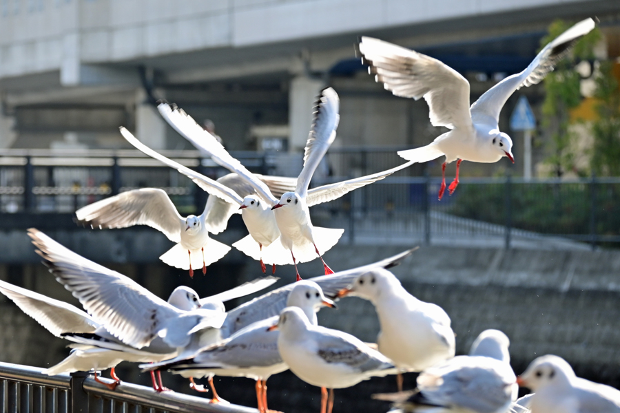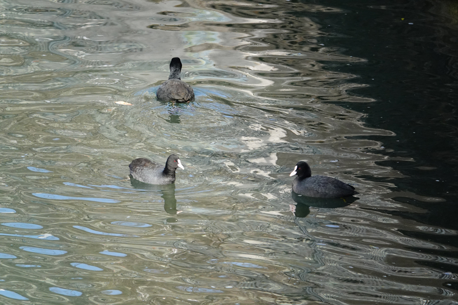 堂々とした大きな体で客船ターミナルの入り口へ向けて泳いでいった。