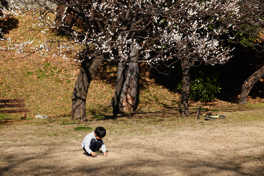 私の目的は大さん橋屋上広場のスケートリンクのような形をした「野外劇場」に泳ぐクジラのプロジェクションマッピングだった。プロジェクションマッピングのクジラは常に泳いでいるわけではない。突然泳ぎ始めては、大さん橋の入口の方へと消えていく。しばらくは、花柄模様などの投影があり、またしばらくして突然鯨が現れる。そのクジラは泳ぐのが速い。ぼやぼやしているとすぐいなくなってしまう。