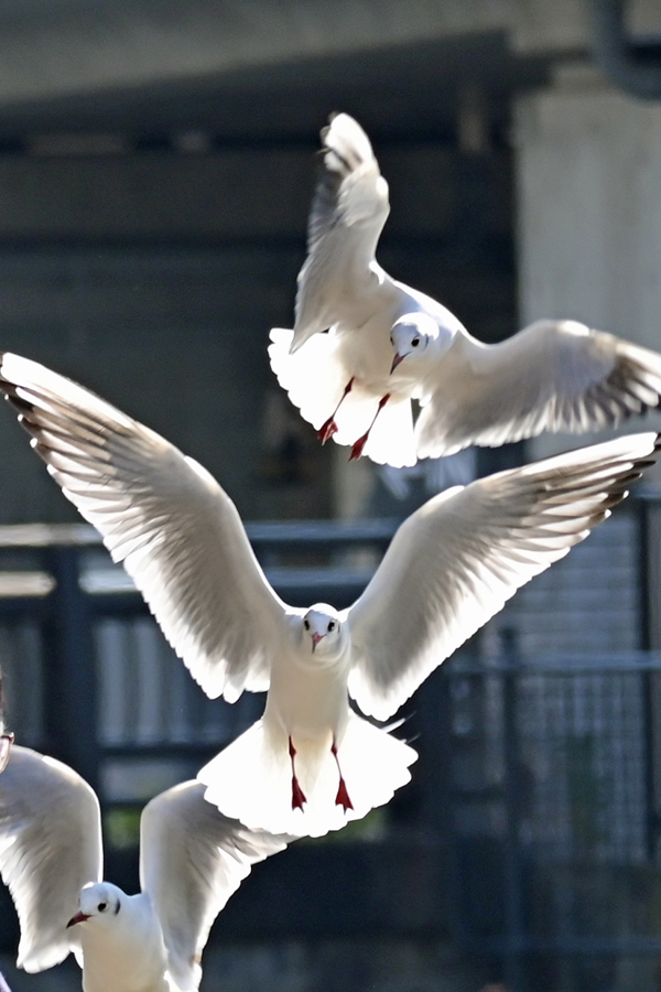 クジラは大さん橋ホールの入り口から、国際客船ターミナルの入口へ向かって泳いでいった。リンクに下りてクジラと戯れる子供たちの声が聞こえる。