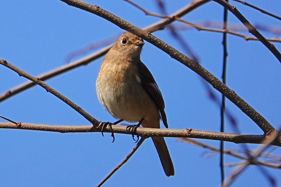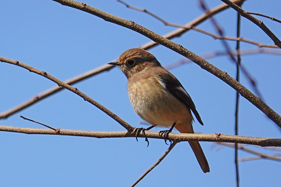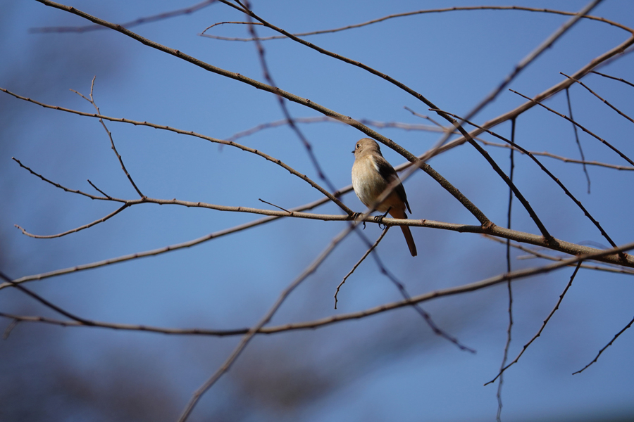 見通しの良い木の枝にとまって獲物を探すモズ(♀) 2026年3月11日 横浜市戸塚区舞岡公園