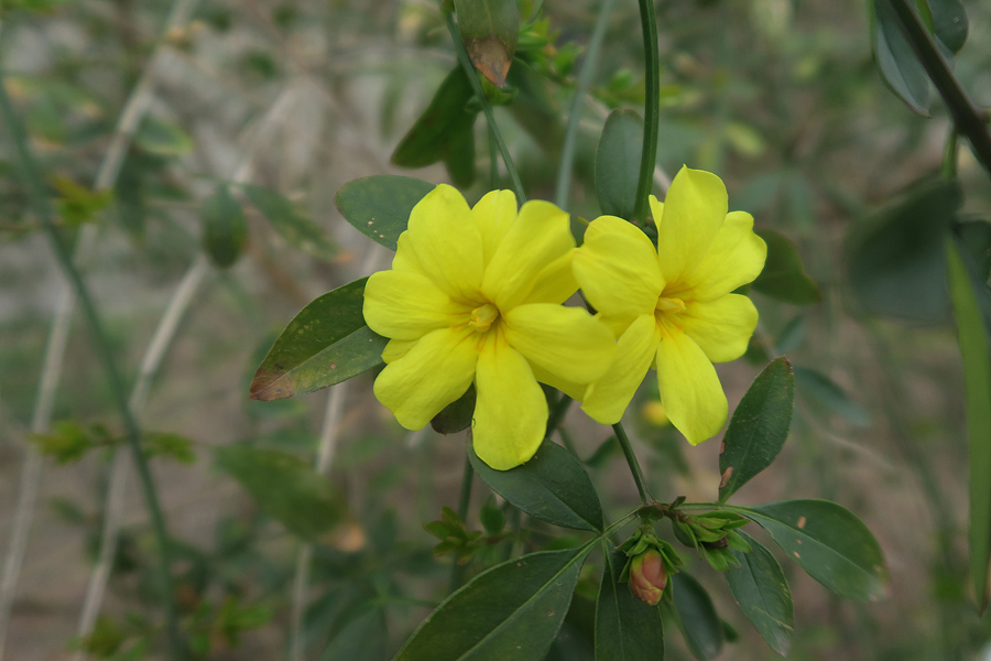 009_260317001 X900 オオバイソケイ G7X.jpg 9.オオバイソケイ(雲南素馨) 別名をオオバイモドキという。中国原産で、ソケイはジャスミンの総称であり、オウバイは香りがない一方、オウバイモドキ(黄梅擬)や本物のソケイは香りを放つ。一見、カタバミの花にも似ている。この季節は黄色い花が多く、目立つ。ソケイ(素馨)とはジャスミンの意だそうだ。。