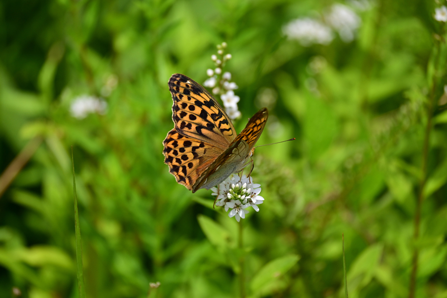 だが、10時からすでに猛暑。汗ビッショリ。蝶影なし。翔んでいるのはキタキチョウ、スジグロシロチョウ、キタテハのみ。カセンソウもあまり咲いていない。チダケサシが多い。いつもいるオオウラギンスジヒョウモンも帰りがけに1頭撮っただけ。ミドリシジミ、ミヤマカラスシジミはもとより、ヒメアカタテハ、アカタテハもいない。今年の夏はおかしい。