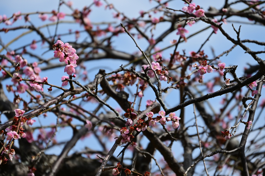 北野天満宮には、菅公ゆかりの梅50種、約1,500本があり、花の時期には約2万坪の境内一円で紅白の梅が咲き競う。いまがその季節だ。早咲きの梅は例年12月中旬頃から蕾が膨らみ始め、正月明けから開花し、徐々に咲き繋ぎ、3月末頃まで長く楽しめるそうだ。