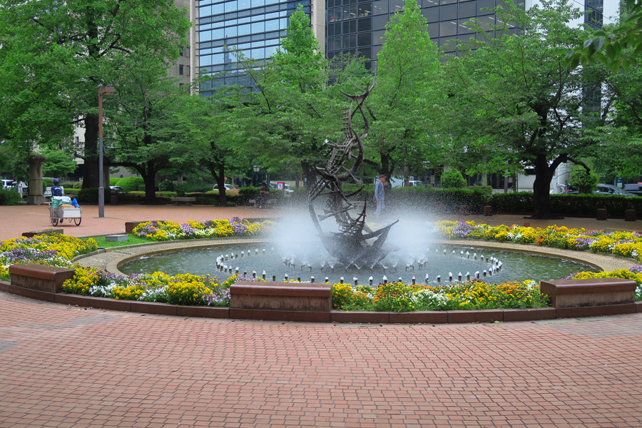 いったん自宅に戻り、見て来た紫陽花や園芸種の花々の写真を撮ろうとカメラを持って再び出かけた。特に、区役所前の通りに咲いていた紫陽花は、同じ株に濃淡のある青、紫、ピンクの花序が魅力的だった。