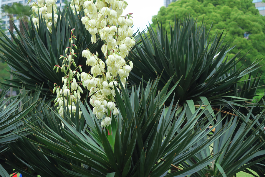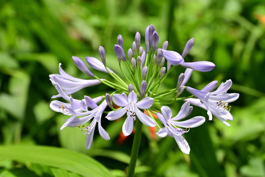 9.アガパンサス・プラエコクス 峰岡公園の国道16号線沿いには、近所の方々が手入れをされている花壇がある。この花は南アフリカのケープ地方原産で、岩の多い草原と石の多い斜面で育つ。これは一般的な観賞用庭園植物として世界中に広まっているそうだ。日本でも観賞用として栽培されている。