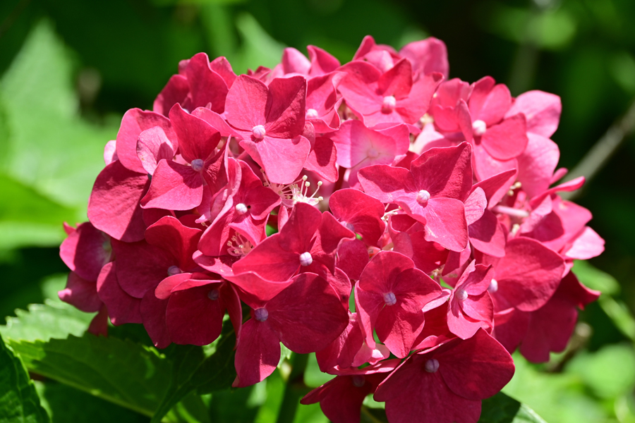 8.ホンアジサイ AIに尋ねる。ホンアジサイの原種は日本に自生するガクアジサイだそうだ。 この写真はおそらく、ヨーロッパで品種改良され、日本に逆輸入された西洋アジサイ系統の園芸品種であり、ガクアジサイではなく、丸く大きな手毬咲きの花が特徴のホンアジサイ(手まり咲き)タイプと考えられ、品種名はレッドビューティーかルビー・レッドの可能性が高いとのこと。
