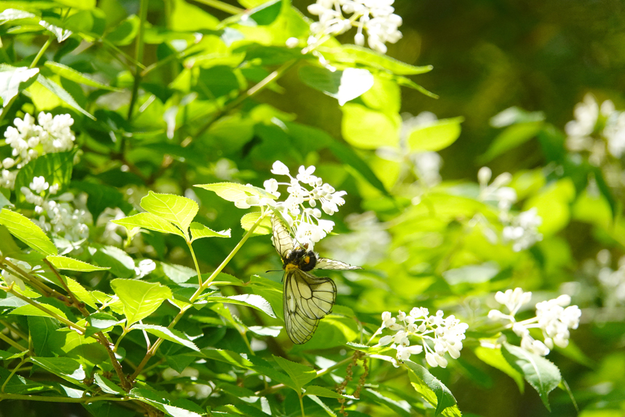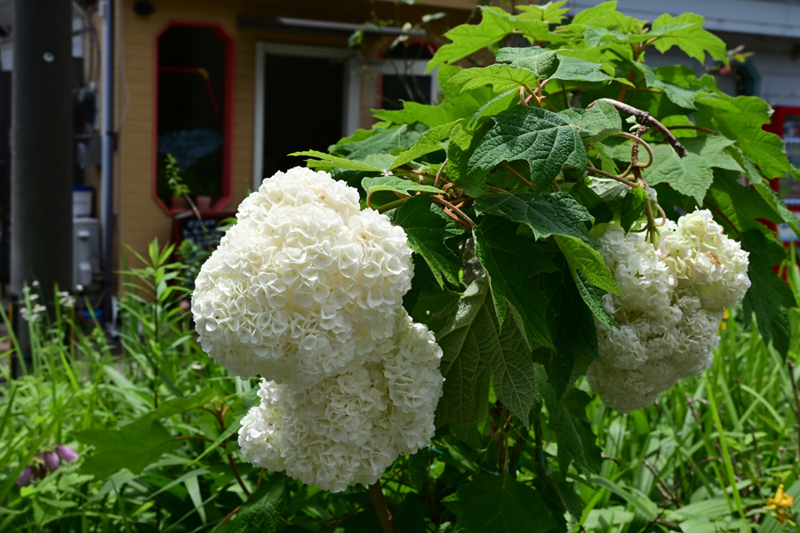 15.カシワバアジサイ(柏葉紫陽花) 真白な花房であまり紫陽花らしくないが、アジサイ科(ユキノシタ科)アジサイ属だ。葉の形がカシワに似ていることが、和名の由来である。