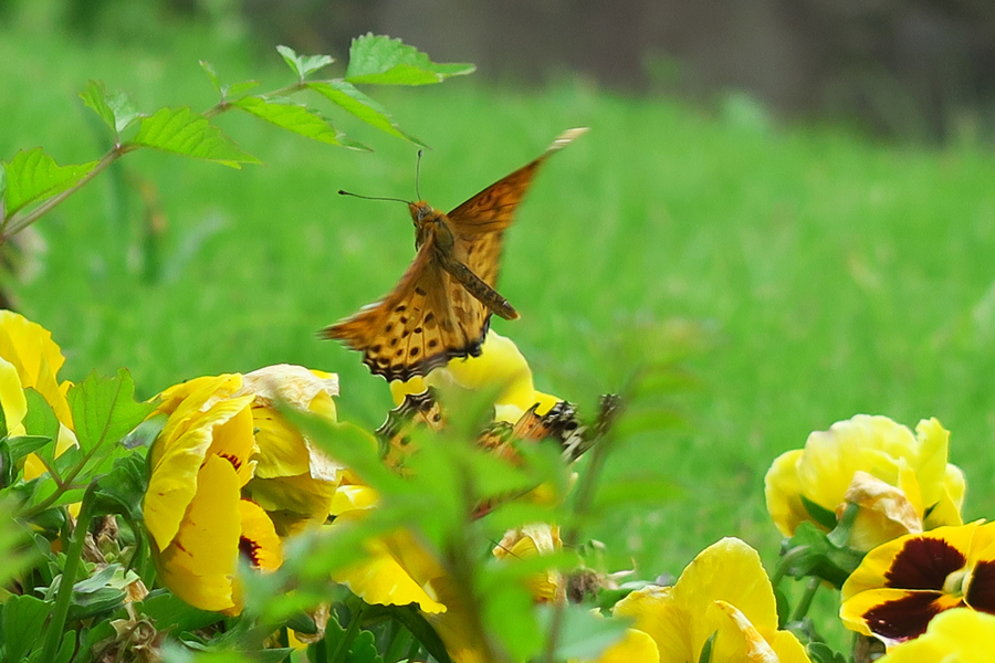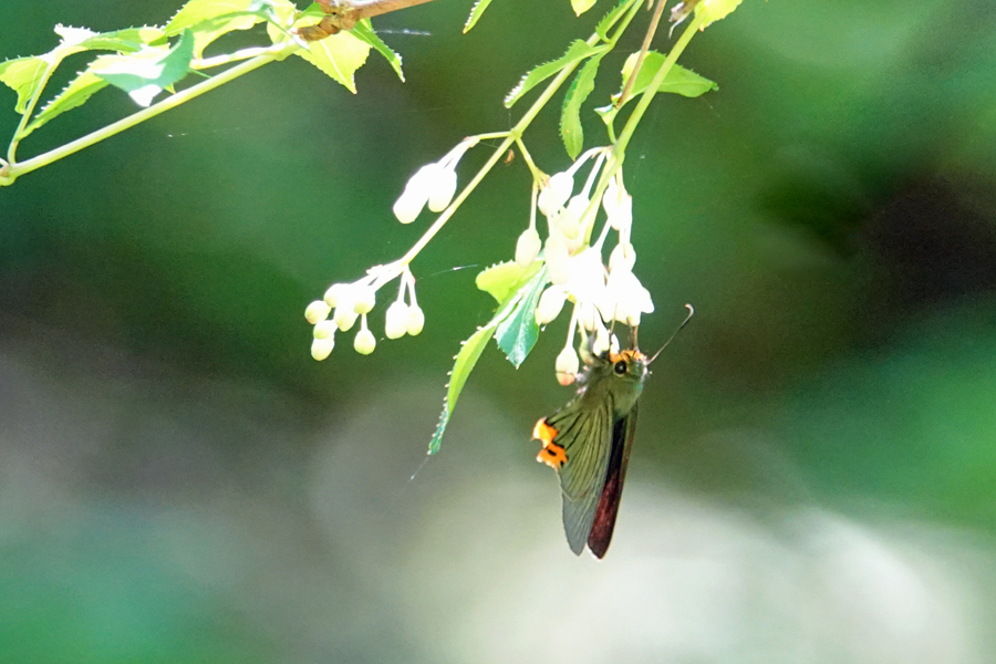 18.ヤマトシジミ♀ 区役所のピロティー部分へ上がってみた。植えられた花にヤマトシジミが舞う。ヤマトシジミ夏型の♀だ。