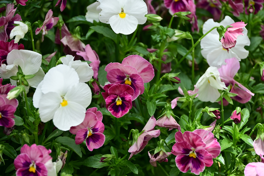 20.ビオラトリコロール ヨーロッパ原産の一年草で、本種を改良した園芸品種がビオラやパンジーと呼ばれ流通している。ビオラトリコロールは、紫色、黄色、白色の3色が混ざった花を咲かせるスミレであることからビオラトリコロールと名付けられた。写真は紫色、黄色、白色の3色が混ざった花ではないが、その園芸品種だる。