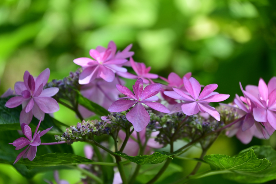 7.ガクアジサイ 昨年も紫陽花の写真を撮っては品種がわからず、消化不良だったことを思い出す。AIに聞いて見ることにした。それによると、ガクアジサイの品種数について、正確な数は不明だが、アジサイ全体では3000種類以上あると言われている。ガクアジサイもその中の一種で、多くの品種が存在している。近年、園芸品種として改良されたものも多く、その数は増え続けているという。ちなみに画像を送って品種名の同定を訊ねてみたところ、ガクアジサイの1品種で、画像からダンスパーティか、コンペイトウではないかと教えてくれた。