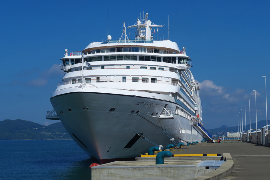 浦頭埠頭クルーズセンター(浦頭ターミナル)は、まだ新しい佐世保港の国際クルーズ拠点。国際クルーズ船の寄港拠点として整備され、2024年6月1日に初めてイタリア船籍のコスタセレーナが寄港した。ターミナルビル横にはクルーズフェスティバルビレッジが設けられ、乗船客だけでなく一般来場者も楽しめるイベントも開催される。雨除けのある長い埠頭沿いの通路をクルーズセンターへと歩いた。