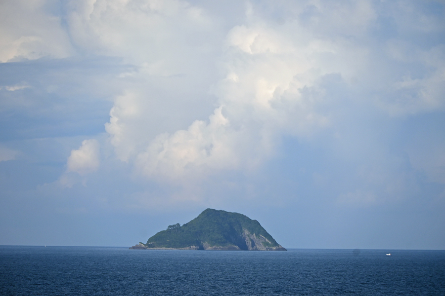 前の写真の左側に小さく見える島だ。もっと鮮明に撮れていれば、判断材料になる何かが写し込まれて、AIに尋ねてみるのだが。