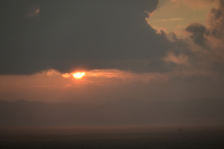 雲に覆われていた東の空の隙間から太陽が上がってきた。