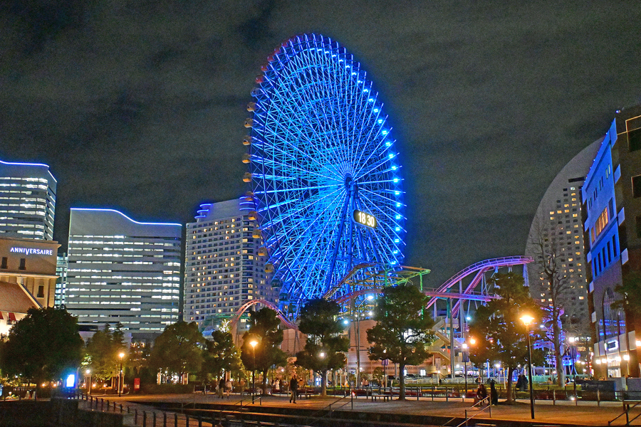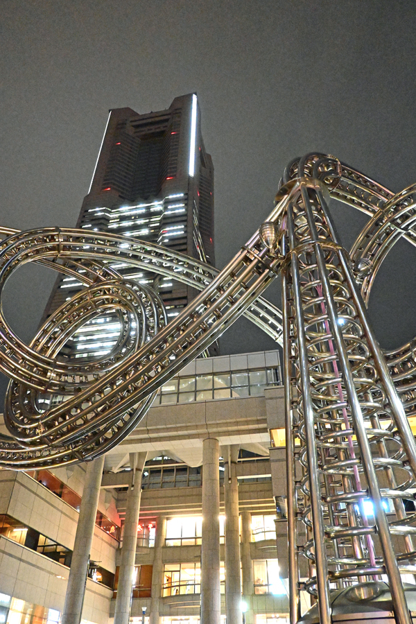 何とかクジラをカメラの収め、寒くて風が強い夜の横浜を、コスモワールドの大観覧車を眺め汽車道を歩いて、ライトアップされた日本丸を見て、ランドマーク・タワーの中に入り、クィーンズ・スクエアからみなとみらい駅まで歩いてきた。