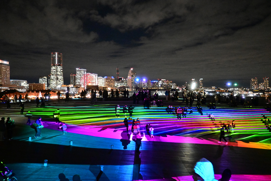 「ヨルノヨ」というネーミングの由来は、「夜の横浜に寄るのよ」という言葉遊びから名づけられたらしい。2020年から始められ今年で6回目を迎えている「夜にあらわれる光の横浜<ヨルノヨ2025>」は12月4日から12月30日まで行われていた。