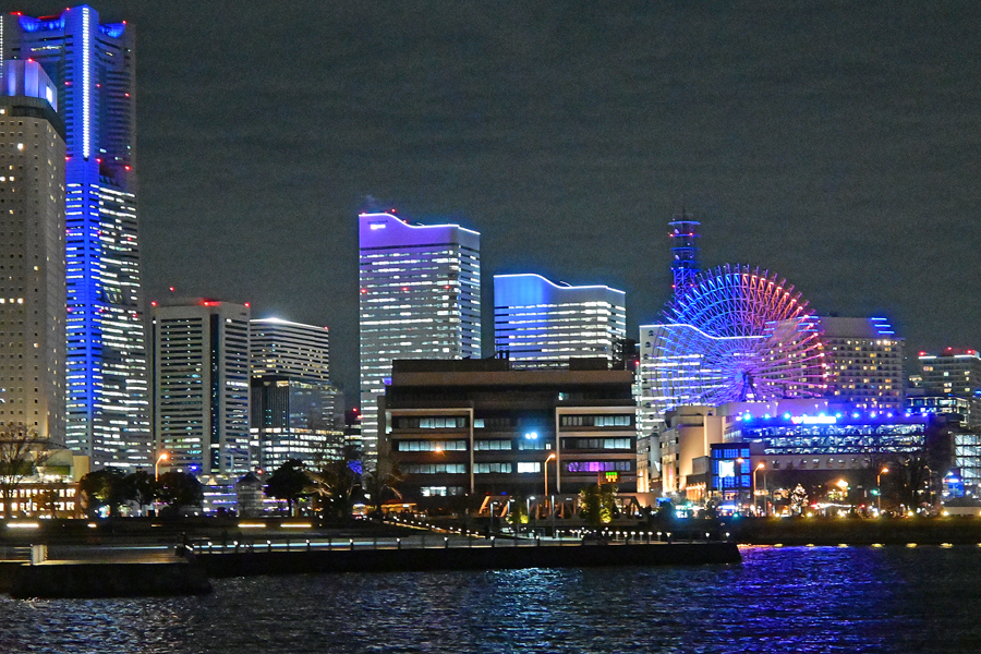 スケートリンクのような野外劇場の観覧席の向こうに、みなとみらいの灯りが輝く。