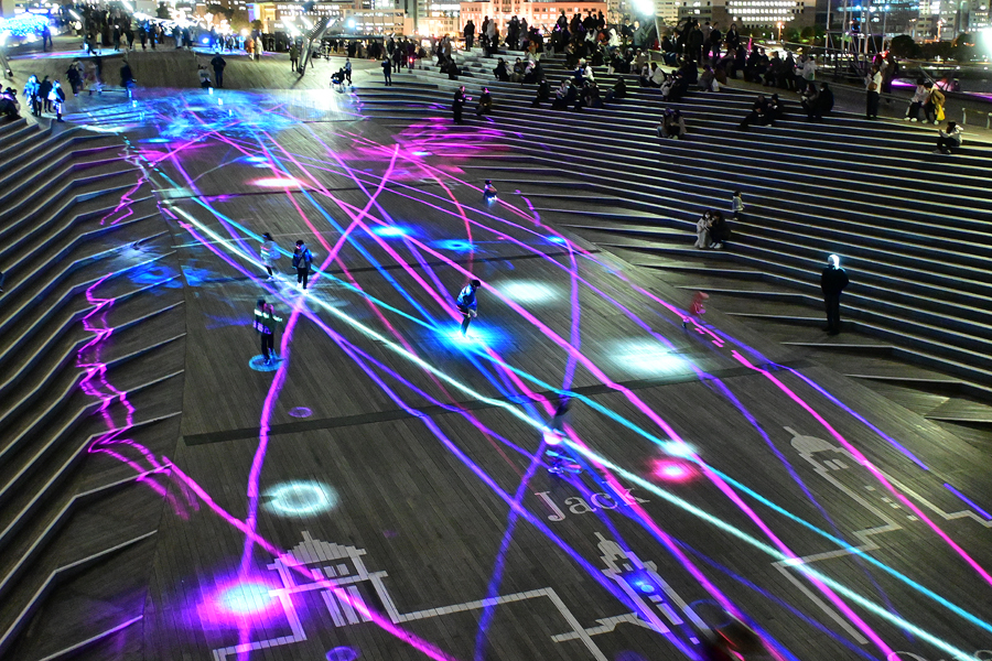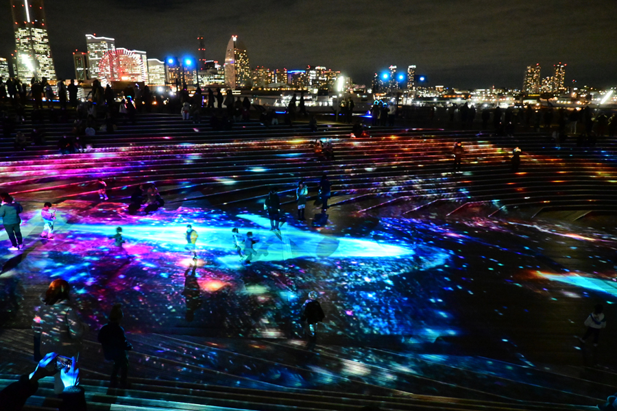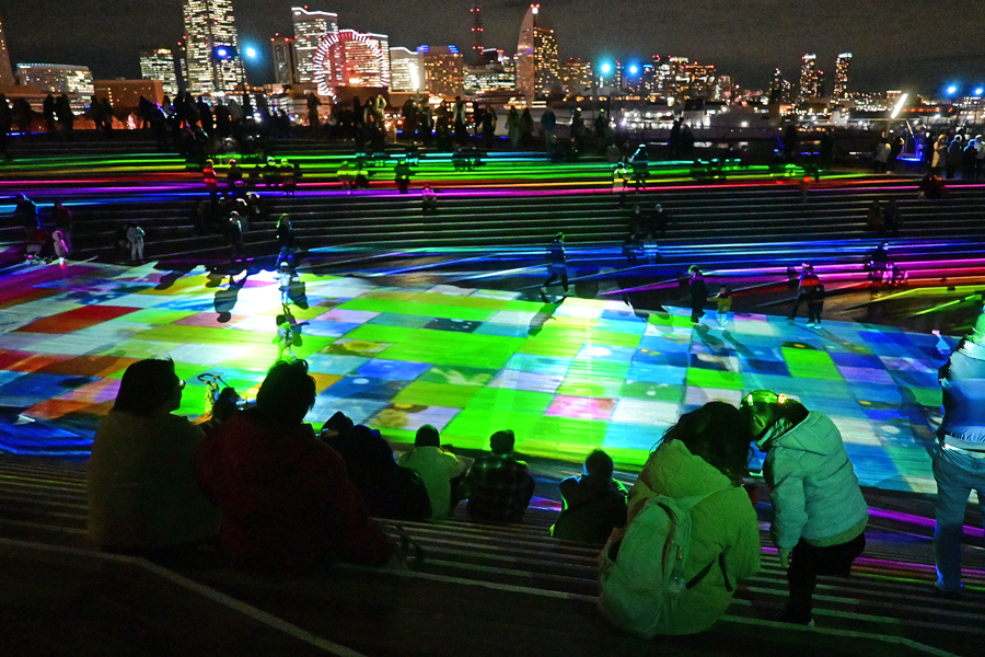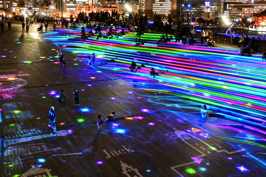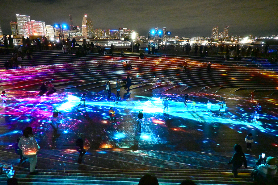「ヨルノヨ」というネーミングの由来は、「夜の横浜に寄るのよ」という言葉遊びから名づけられたらしい。2020年から始められ今年で6回目を迎えている「夜にあらわれる光の横浜<ヨルノヨ2025>」は12月4日から12月30日まで行われていた。
