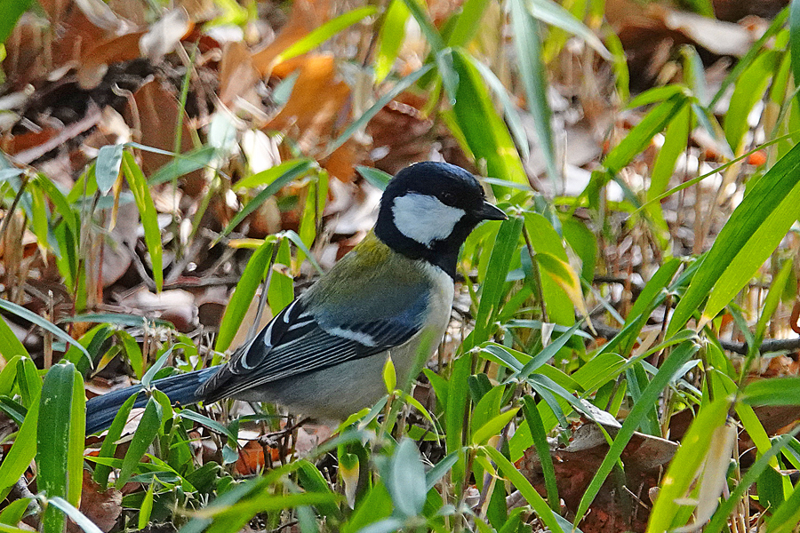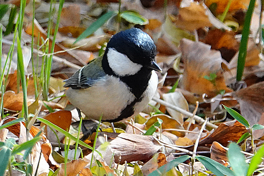 3~4頭ほどいたようだったが、1羽が地面に下りて何か餌を探している。シジュウカラ(四十雀)は食性が広く、春から夏は主に昆虫やクモ、イモムシなどの虫類を捕食し、冬場は植物の種子や果実などを食べる雑食性の野鳥だそうだ。春先にはシジュウカラも梅や桜の花を訪れ、蜜を吸ったり、花に集まる虫を捕食したりする姿が観察されているちうが私は見たことが無い。バードフィーダー((野鳥の餌台)ではヒマワリの種、ピーナッツ、脂身などが好物という。