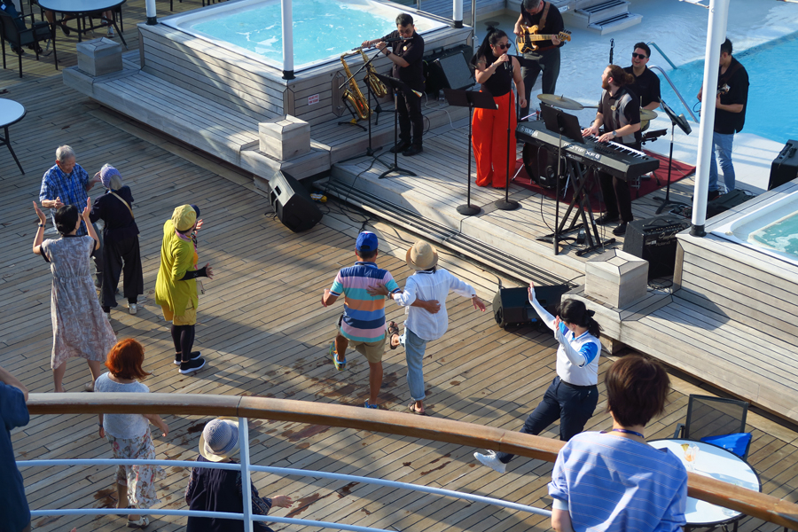 正午に大さん橋に接岸し、12時30分予定通り、下船が始まった。横浜はこの日も猛暑だった。荷物の受け渡しもスムーズに行われ、解散となった。