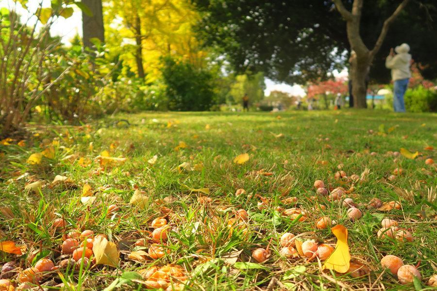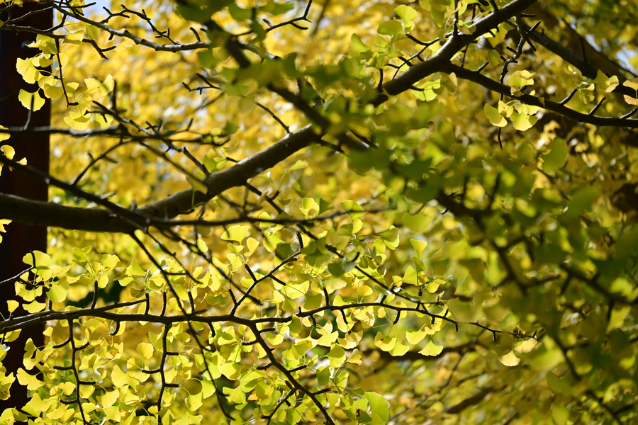 明神台バス停から保土ヶ谷公園へ向かうバス通りの銀杏は日当たりが良いためか、早く黄色くなっている。