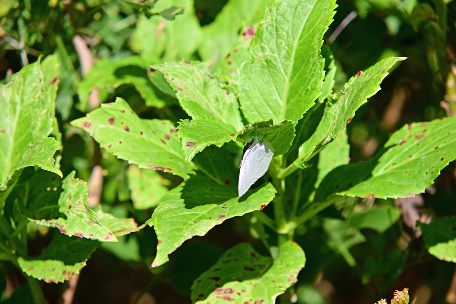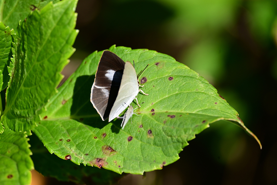 ヤマトシジミの♂が尾端を曲げて求愛行動をとる。その行動はしばらく続くが、当然のことながら、その思いは通じるわけがない。ともに鱗翅目シジミチョウ科の種だが、大きさと言い、姿かたちと言い、全く異なる種であることは言うまでもない。以前にもルリシジミが同様の行動をとるシーンを目撃したこともある。ウラギンシジミは半開翅。羽化したてのようなきれいな個体だった。ChatGPTに問うてみた。チョウ類ではときどき見られる「誤認求愛(species misidentification)」の一例と考えられるという答えがあった。
