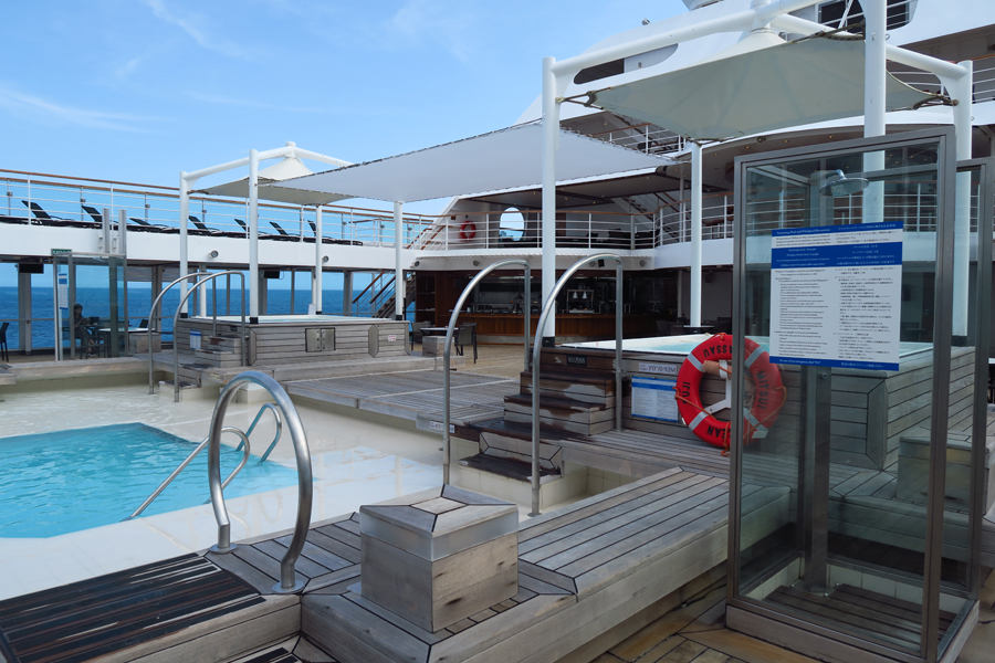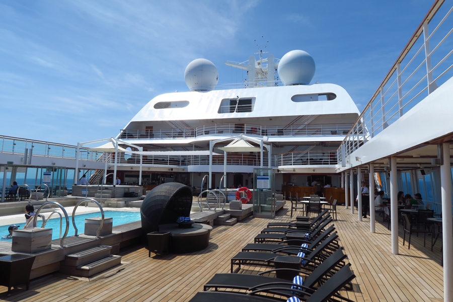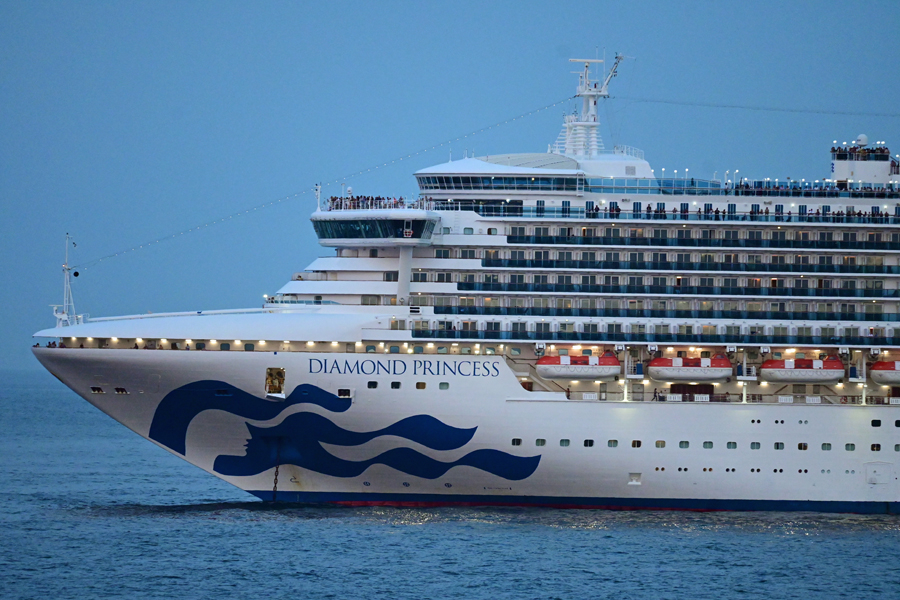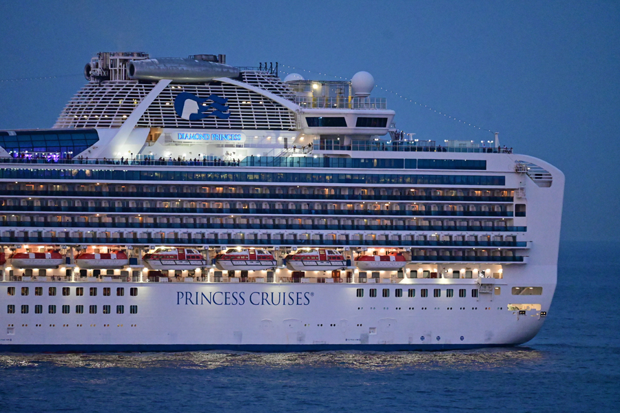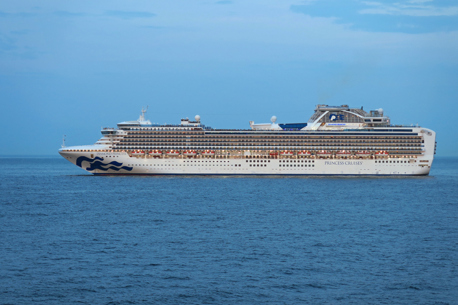 235.PILOTボートがOCEAN FUJIに接近 7F客室のバルコニーから下を覗き込むと、「みさご」はOCEAN FUJIにぶつからんばかりに接近してきていた。