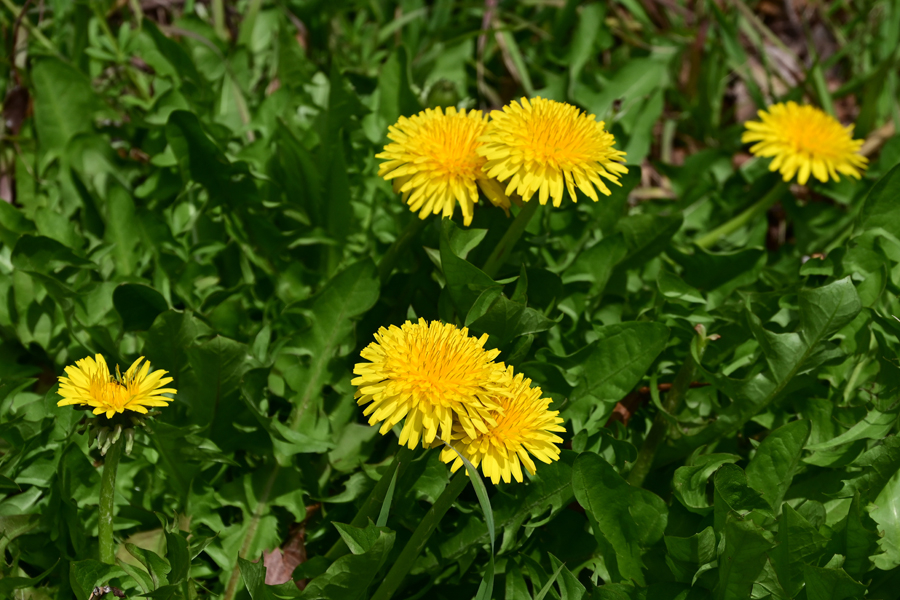 セイヨウタンポポは元気が良い。モンキチョウなど、いろいろなチョウが吸蜜に来る。