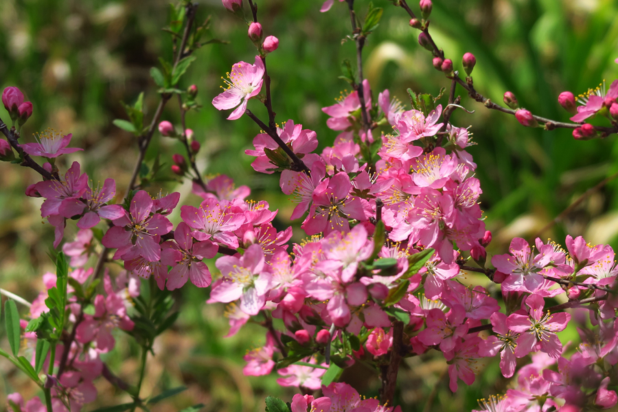 正式にオヒョウモモというらしいが、そう表現する人は極めて少ないという。増殖力が強く、地表付近・周りの根から多数の新芽を出してくるそうだ。色が濃い。ハナモモのようにも見える。中国北部原産で、十勝地方に多く植えられているといい、シベリアには自生していないそうだ。