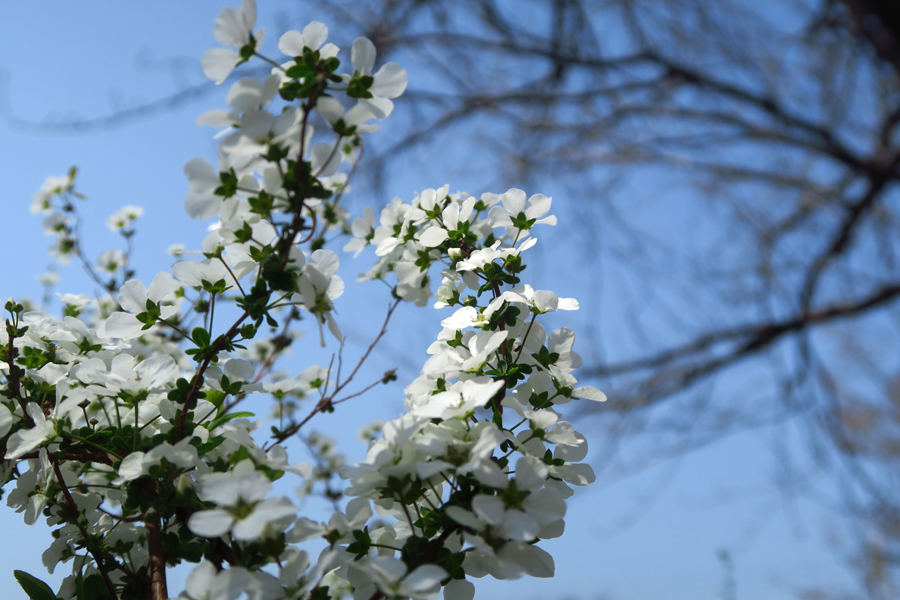 目立たないが、公園の隅の方でユキヤナギが咲いていた。ユキヤナギも春に咲く花の代表だ。