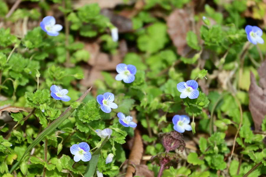021_250314113 X900 保土ヶ谷公園 オオイヌノフグリ Z50 Z18-140.jpg 21.オオイヌノフグリ(大犬の陰嚢),br. 何でこんな酷な名前が付いたのだろうか。Wikipediaによれば、オオイヌノフグリは、オオバコ科のクワガタソウ属のイヌノフグリに似ていて、それより大きいことから付けられた和名で、イヌノフグリの果実の形が雄犬の陰嚢に似ていることからこの名前が付いたとのこと。気の毒なことだ。地表近くにこの花が敷き詰められるようになると、春本番を感じる。