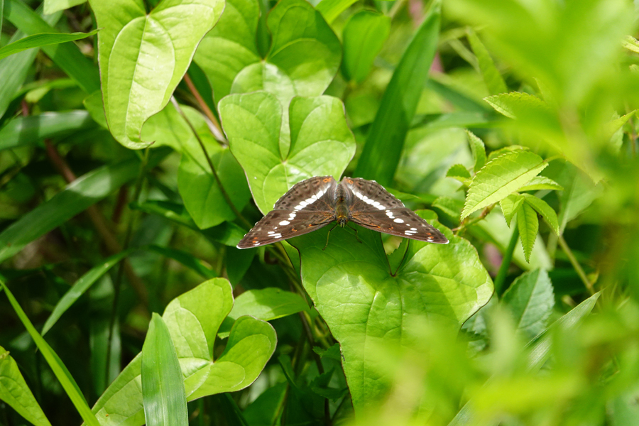 やっとチョウを見つけた。外来種のアカボシゴマダラ♀だ。