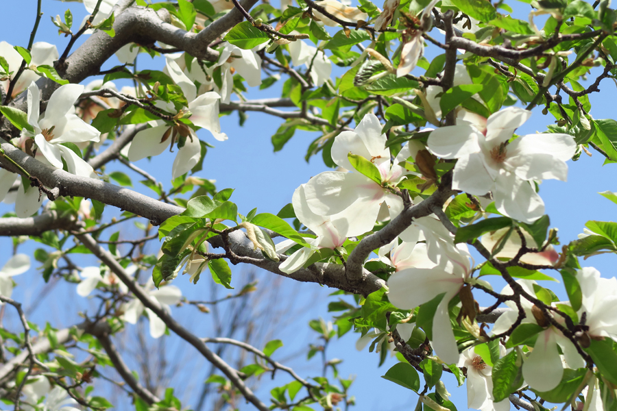 区役所の前の通りに、街路樹としてコブシが植えられ、満開になっていた。